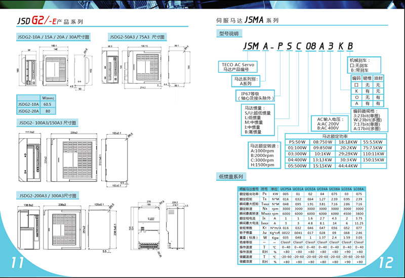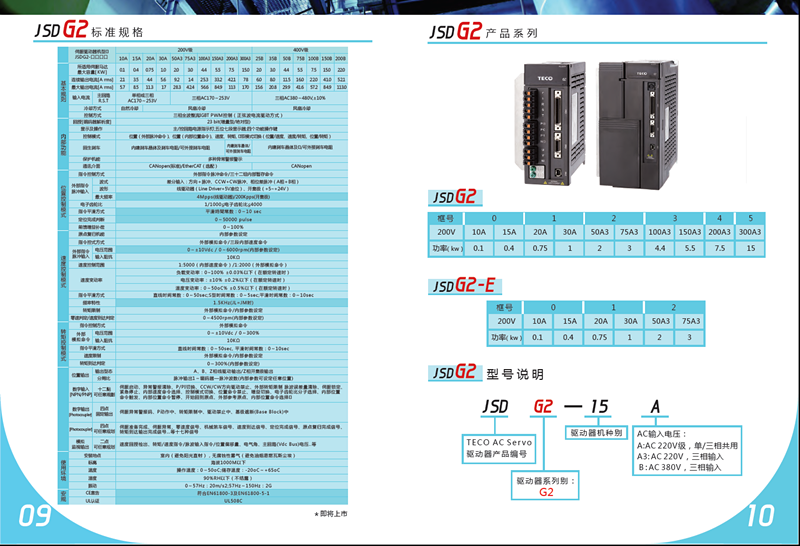 東元伺服JSDG2驅動器型號說明及規格