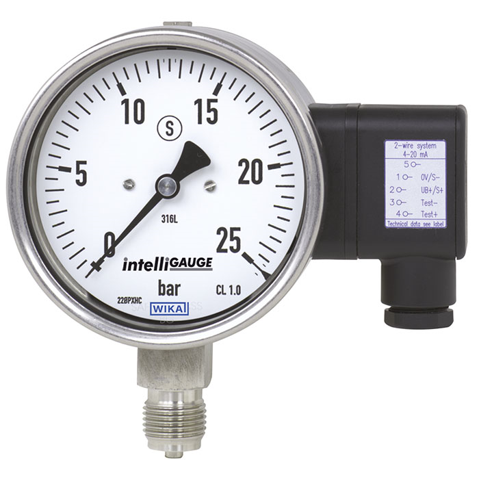 intelliGAUGE系列的PGT23型壓力表采用專利技術(歐洲專利號:EP 06113003,其他類別),可用于在受限制空間內的測量點進行測量。如果您希望在本地顯示過程壓力的同時,也將信號傳遞至中央控制器或遠程控制室,那么該型號壓力表將是理想選擇。