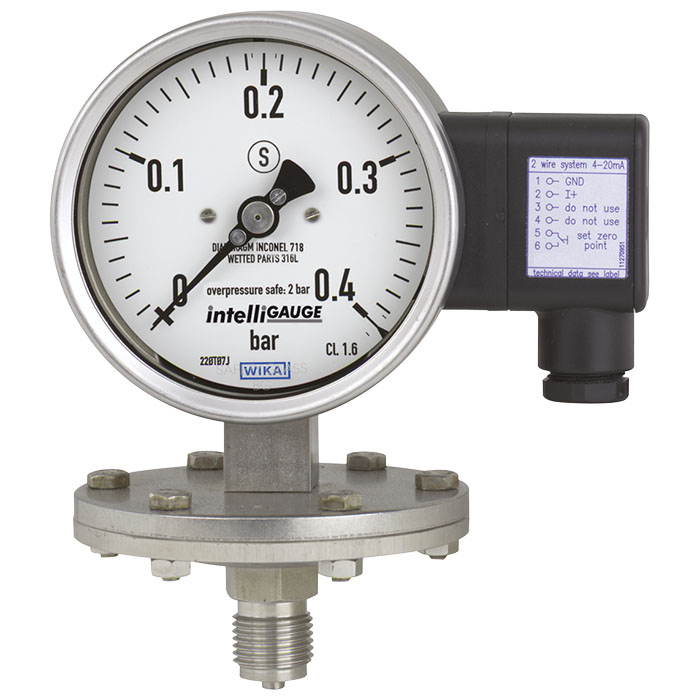 intelliGAUGE? 系列的PGT43型壓力表采用專利技術(已獲專利,如:DE 202007019025),可在測量點進行測量。如果您希望在本地顯示過程壓力的同時,也將信號傳遞至中央控制器或遠程控制室,那么該型號壓力表將是理想選擇。